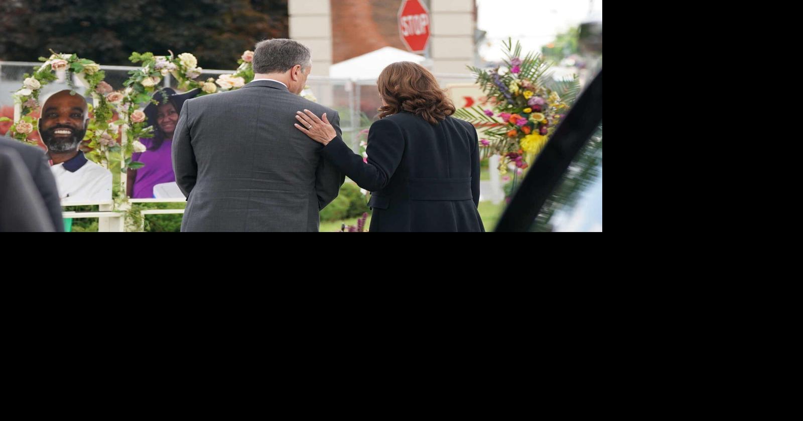 After the funeral, Harris and her husband, Douglas Emhoff, traveled to the memorial outside the Tops supermarket on Jefferson Avenue where the shooting took place.