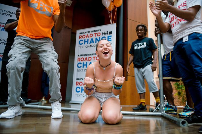 I asked Dana Loesch a question about semiautomatic assault weapons. We had a couple of Republicans in our group who would tell us, “Don’t say ‘assault weapons’; say ‘semiautomatic assault rifles.’ They’re going to catch you on that and say, ‘Those aren’t even real guns; they don’t sell those.’ Say the right word and then they can’t argue with you about it.” CNN asked us to submit our questions and selected the “best” questions for us to ask (they were actually just the least controversial). I was assigned a weak question (“Do you believe it should be harder to obtain these semiautomatic weapons and the modifications for these weapons to make them fully automatic?”), and Loesch’s answer was patronizing (“I was a very politically active teenager. And I’m on this stage as a result of that. Think of how far you all could go as a result of voicing your beliefs”). Still, she got booed out of the building. I remember laughing and crying through the commercial break because Marco Rubio wouldn’t answer Cameron’s off-script question: “Can you tell me right now that you will not accept a single donation from the NRA in the future?” I was like, That’s it, we got him, he’s done for, because I had seen The West Wing and thought, This is how politics works. One slipup and you’re dead. This past November, he won his third term in office.